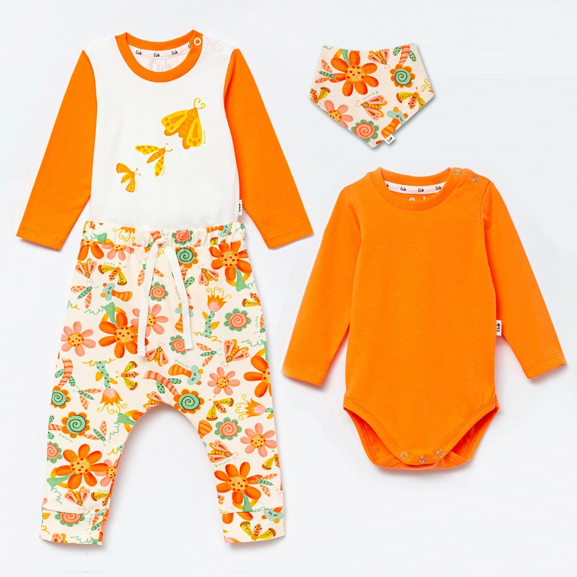 Kit bebê Manga Longa Mariposa compõe: